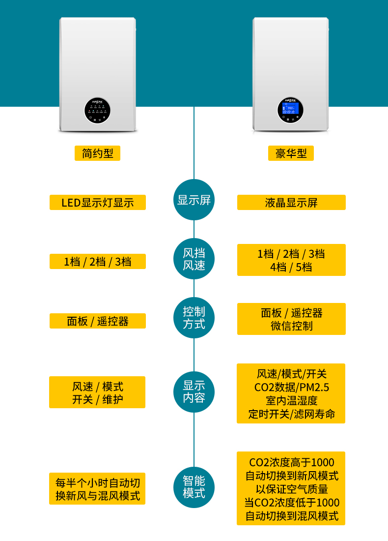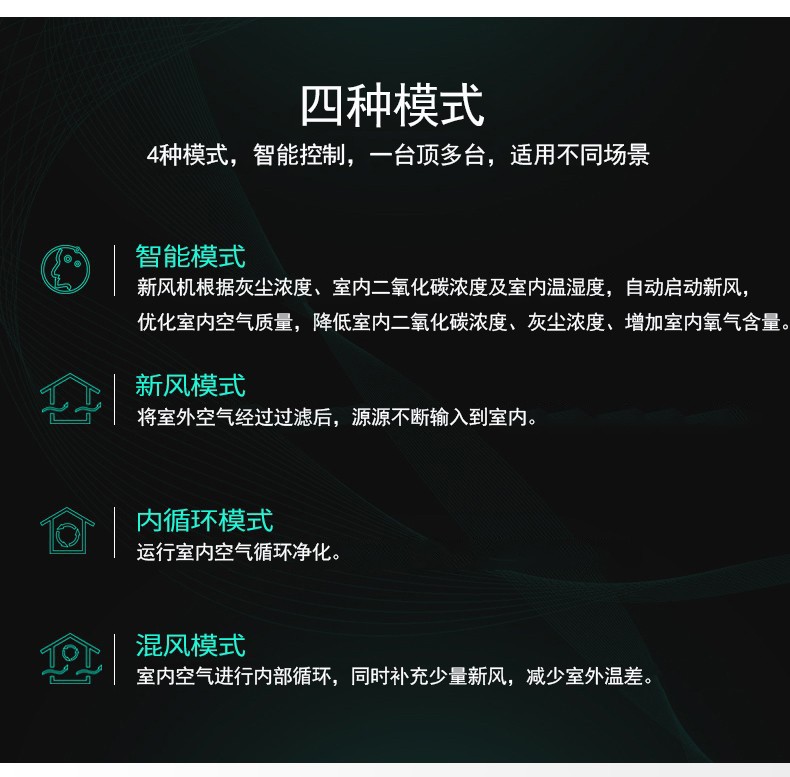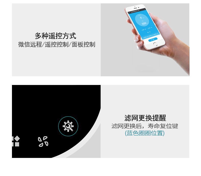 5、智能風閥控制,智能化霜,濾網更換提醒,擺風功能、空氣指示燈