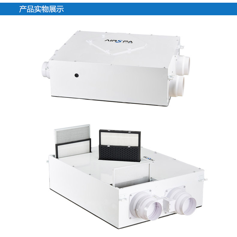 高能效比:采用水平進排風,具非常高的能效比,可回收70%以上能量 高效過濾:采用歐洲標準H13級過濾,多重過濾;PM2.5過濾99%以上 雙向流新風機:訂機采用雙核動力設計,動力強,體積小;采用直流無刷電機,低噪音,低能耗