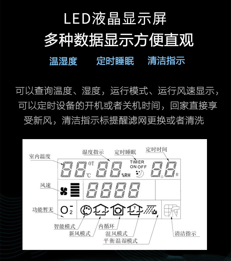 適用范圍:學校、家庭、醫院、客廳等 產品作用:抗霾除醛、降低室內二氧化碳、保持室內氧含量充足 產品特點:五檔風速調節/APP智能監控/H13級過濾/智能風閥控制/維護方便、快捷/超博,超靜音/超大液晶顯示